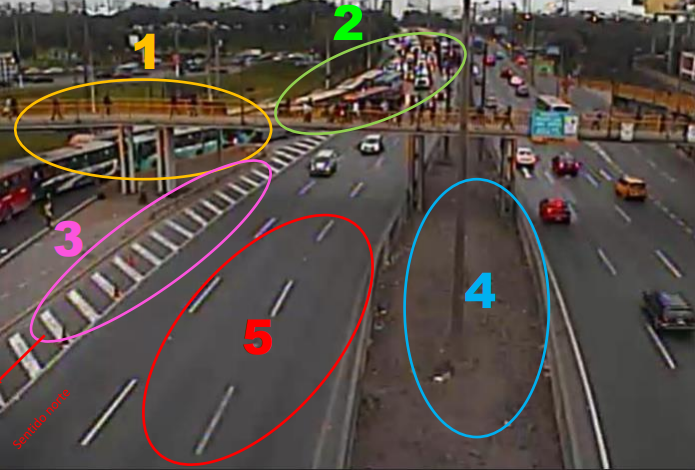 1. Los vehículos de transporte publico se aglomeran en la entrada del paradero.